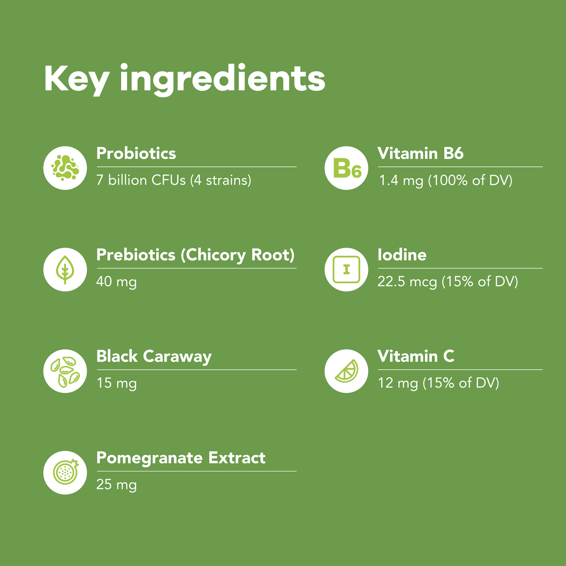 Probiotics replenish and nourish the naturally occurring good bacteria in your gut, for enhanced digestive function and overall gut health. Includes 4 essential types of probiotics: Lactobacillus acidophilus, Lactobacillus casei, Lactobacillus plantarum and streptococcus thermophilus.*
